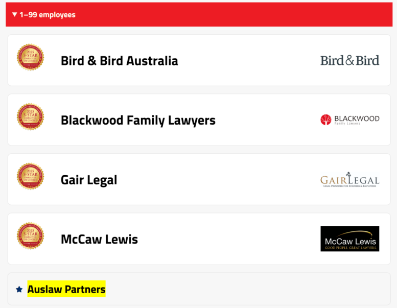 Auslaw Partners has been selected as 5-star Employer in Australia for three consecutive years