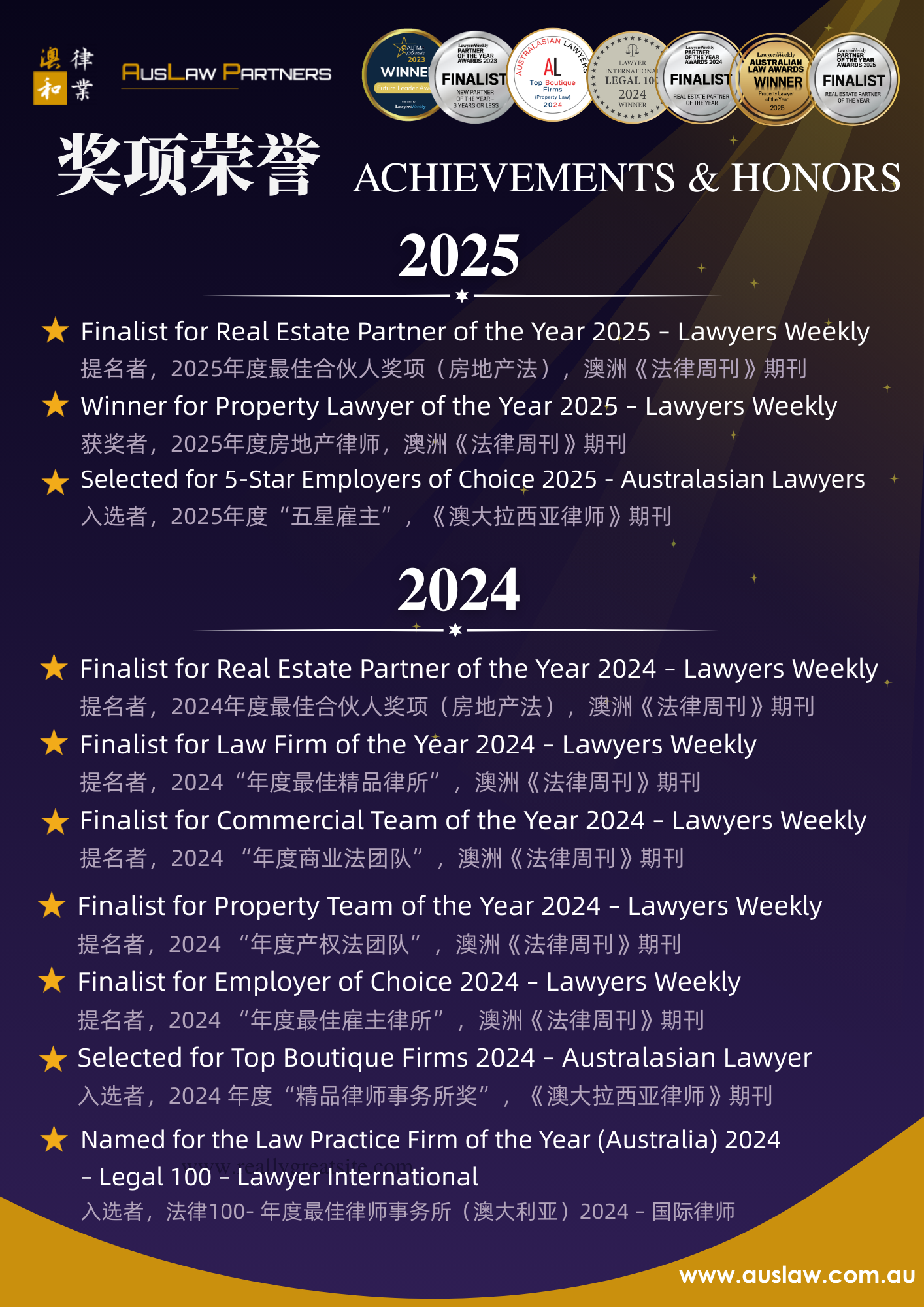 Auslaw致力于通过多文化视角整合法律资源,为客户提供商业视角与法律风控兼备的战略建议,广受投资人、开发商、华人社区以及本地企业主信赖。更多信息请访问律所官网。